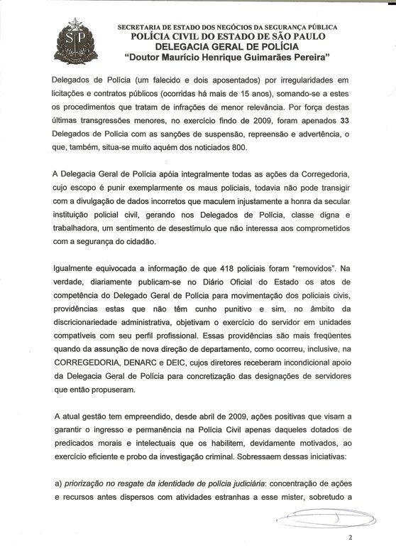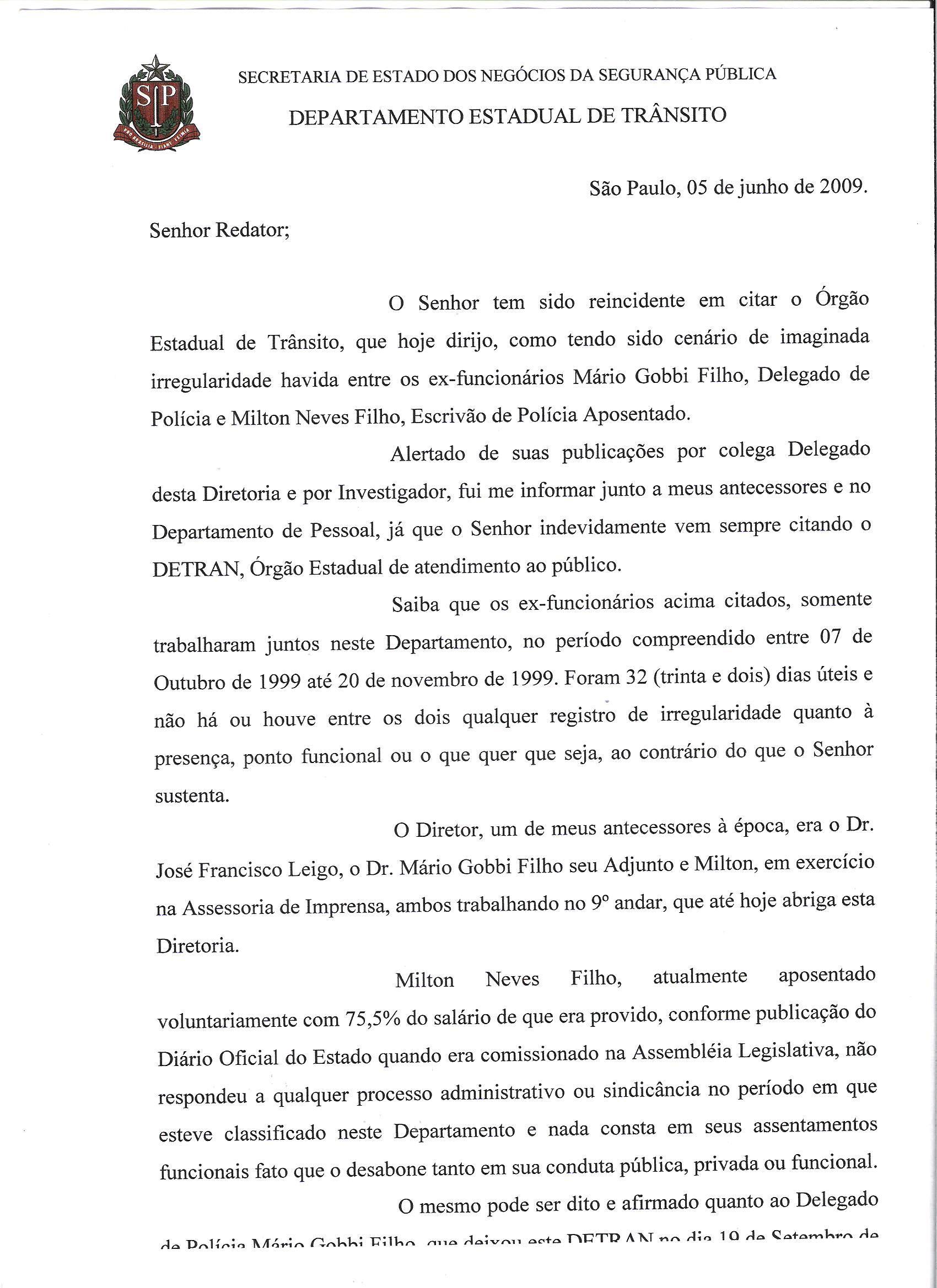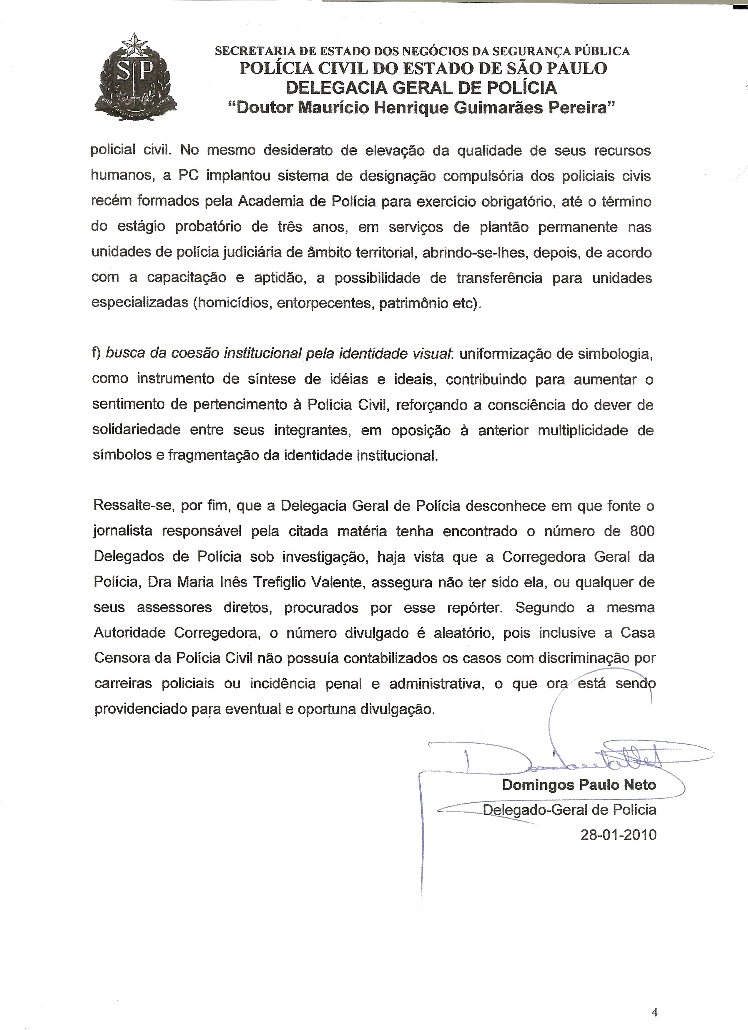 Em quase 30 anos no exercício de função pública, nunca fui processado civil, penal ou administrativamente. Não existem pendências administrativas em relação a minha pessoa na Corregedoria da Polícia Civil, ou em qualquer outro órgão público. Destarte, não existem justificativas lógicas para a inclusão do meu nome e da minha imagem em matéria jornalística que trate de pretensos funcionários investigados.