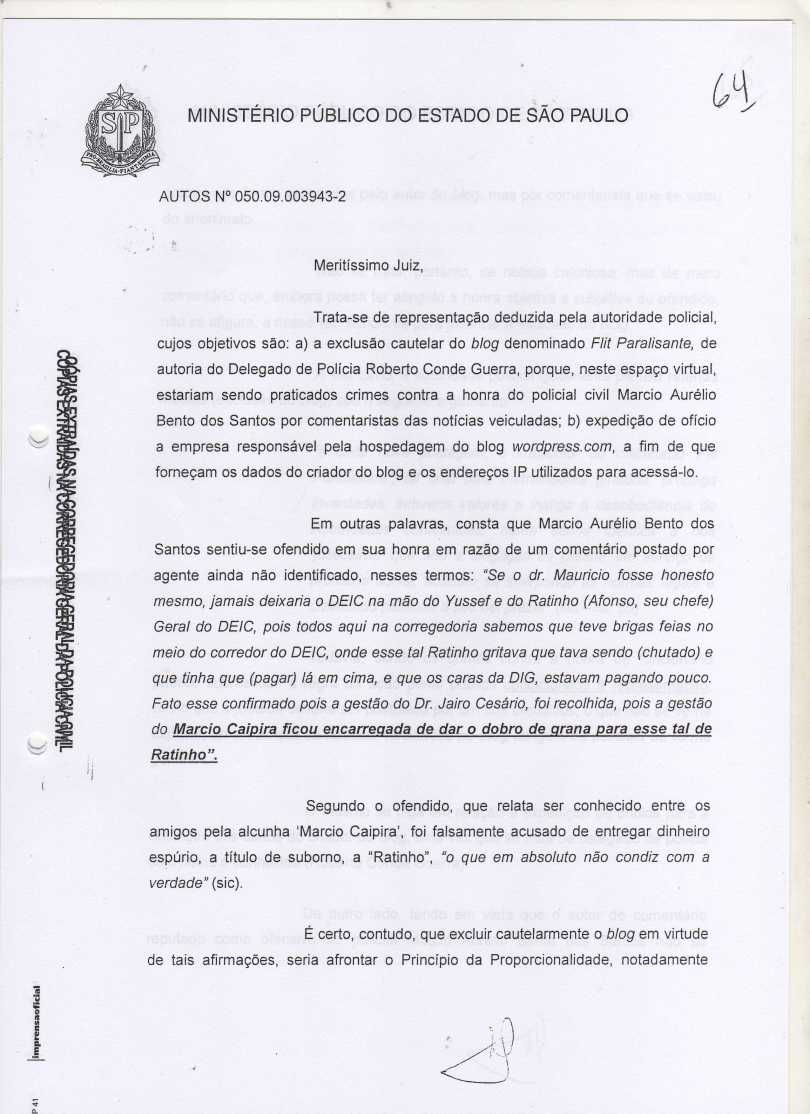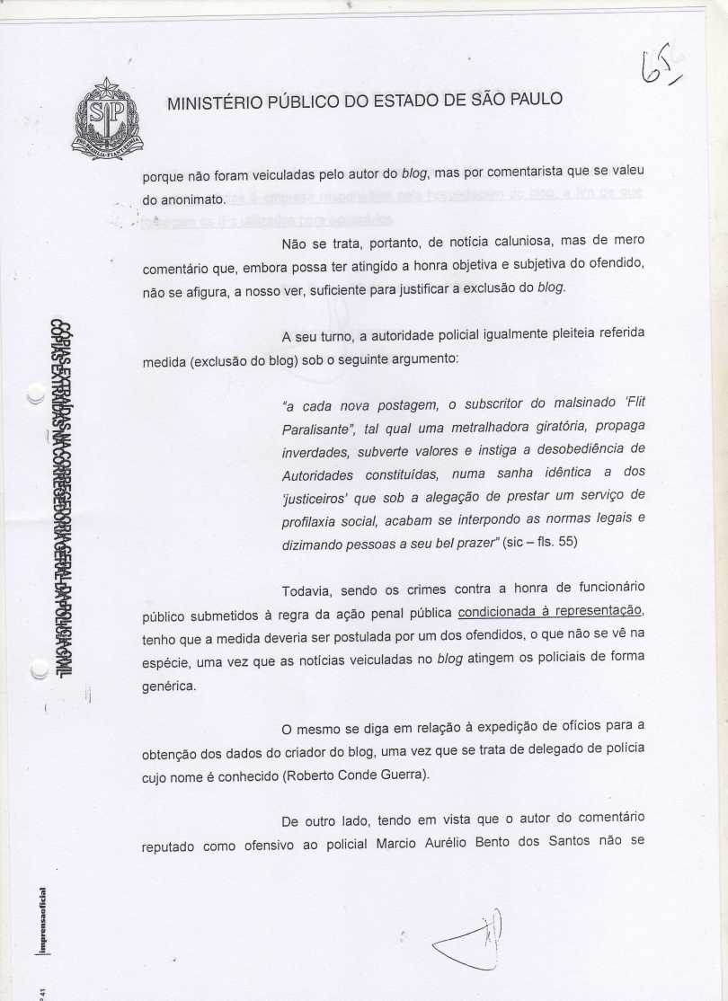 TRATAMENTO DISPENSADO PELO PROMOTOR: FLIT PARALISANTE, DE AUTORIA DO DELEGADO DE POLÍCIA ROBERTO CONDE GUERRA…A AUTORIDADE DO DEIC – DE MÁ-FÉ -EM NENHUM PARÁGRAFO DO SEU ENREDO MAL ELABORADO EM 12 LAUDAS FAZ MENÇÃO À IDENTIDADE “DO SUBSCRITOR DO LEVIANO BLOG” 4