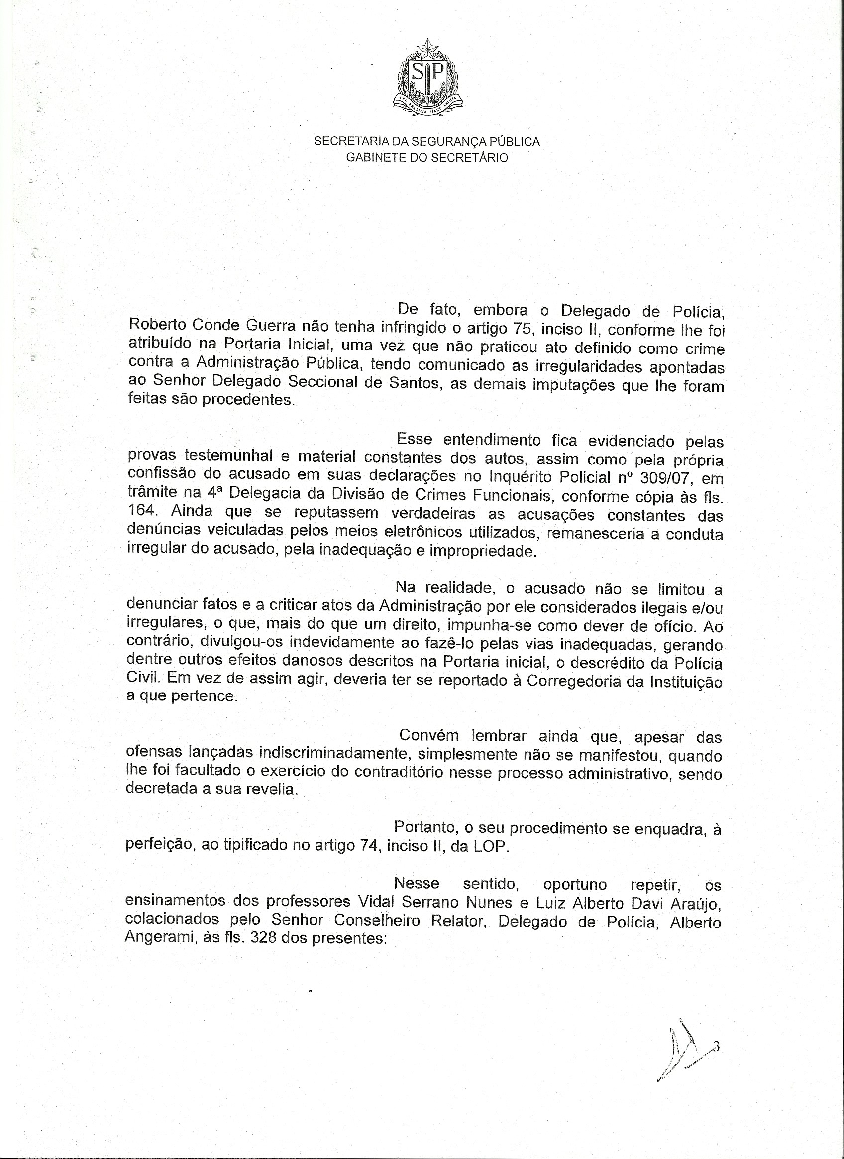 Começava ali uma batalha na polícia, que se acirrou em agosto com a decisão do governador José Serra (PSDB) de tornar a Corregedoria independente da Delegacia-Geral, subordinando-a diretamente à Secretaria da Segurança Pública. Muito policial criticou a medida como uma perda de prestígio para a Polícia Civil.