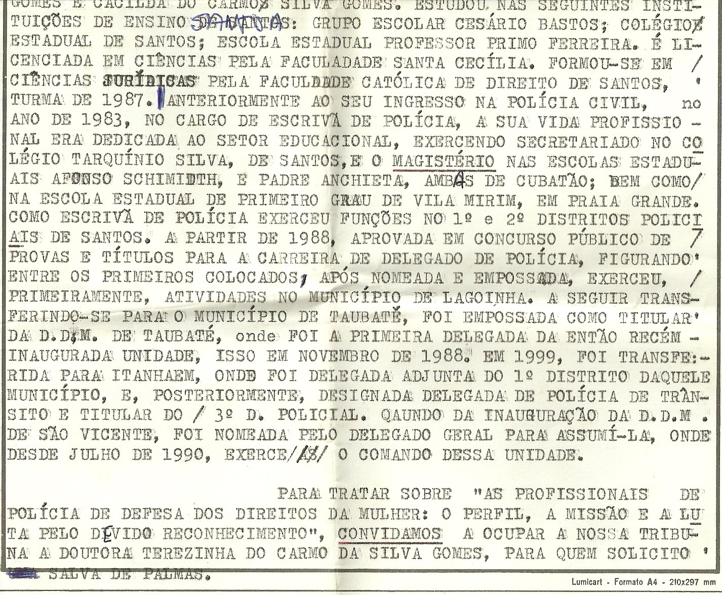 Decidiu, então, iniciar um novo capítulo. Influenciada pelo professor de Direito Penal Francisco de Camargo Lima, delegado que foi corregedor da Polícia Civil, resolveu deixar de ser dona de casa. Tinha 41 anos e entrou para a polícia. Não havia ninguém na família que lhe servisse de exemplo. Foi, como costuma dizer, a “única doida” entre três irmãs a fazer essa escolha. A aceitação não foi fácil. Na verdade, em quatro anos, a nova profissão implodiria o casamento. O marido engenheiro se tornou mais uma página virada na vida de Maria Inês.