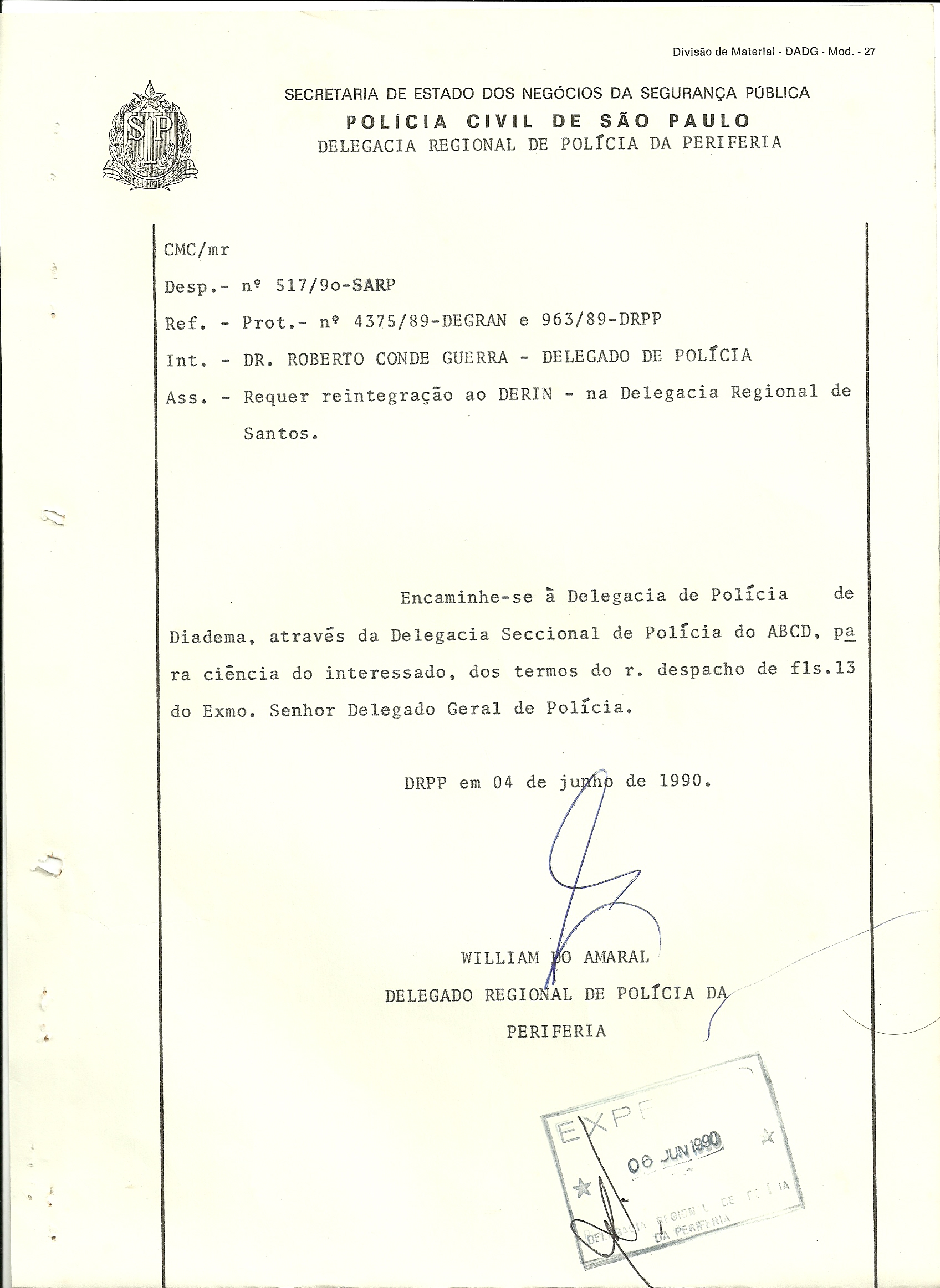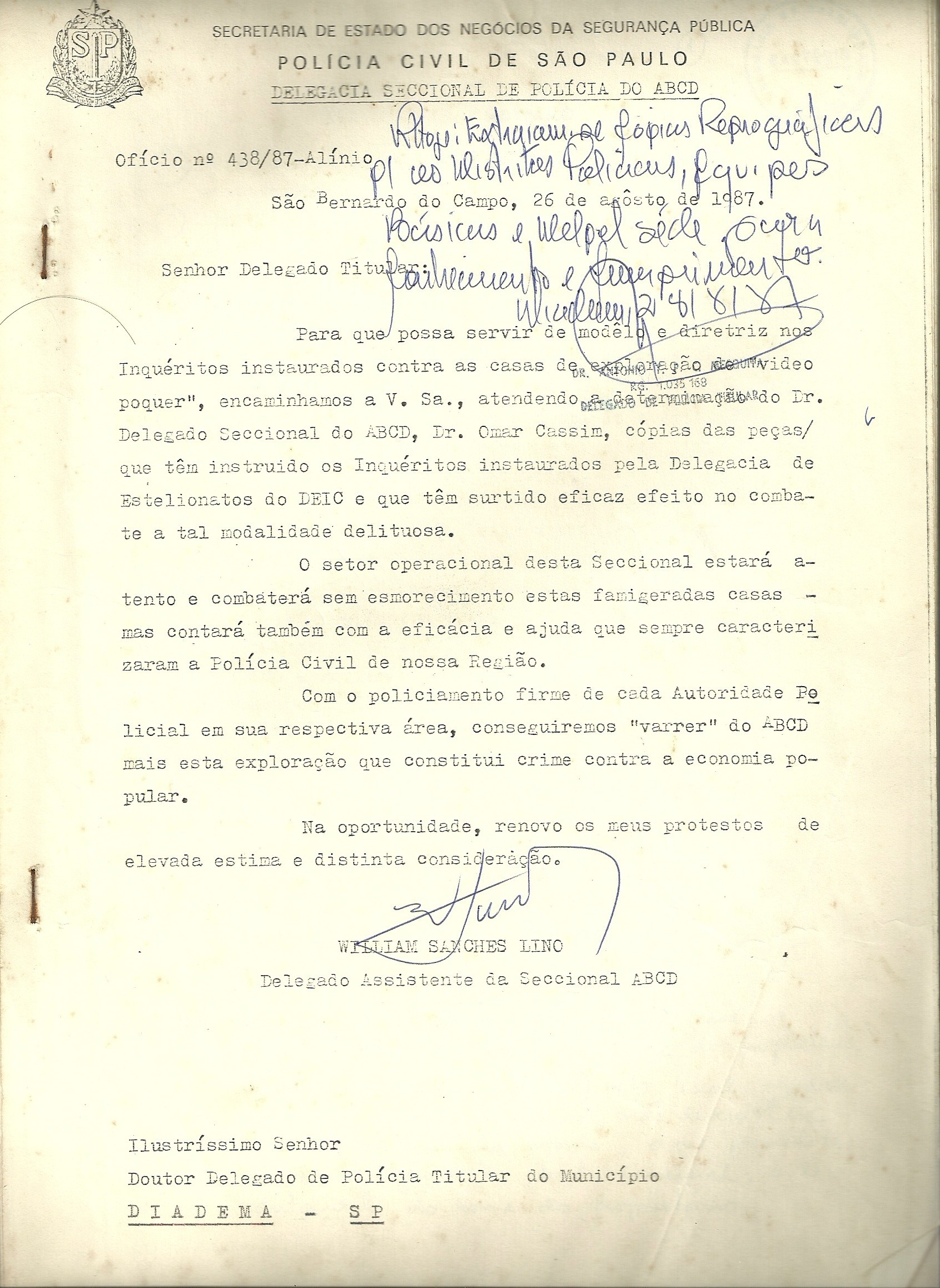 Em linhas gerais o nosso DGP, Domingos Paulo Neto, meteu a boca e a Olivetti contra a veadagem – VEADAGEM EM TODOS OS SENTIDOS – que campeava pela cúpula da Polícia Civil, durante as gestões dos Delegados Augusto Malheiros e Álvaro Pinto; denunciando PREMONITORIAMENTE o caos decorrente do balcão de troca e venda de cargos.