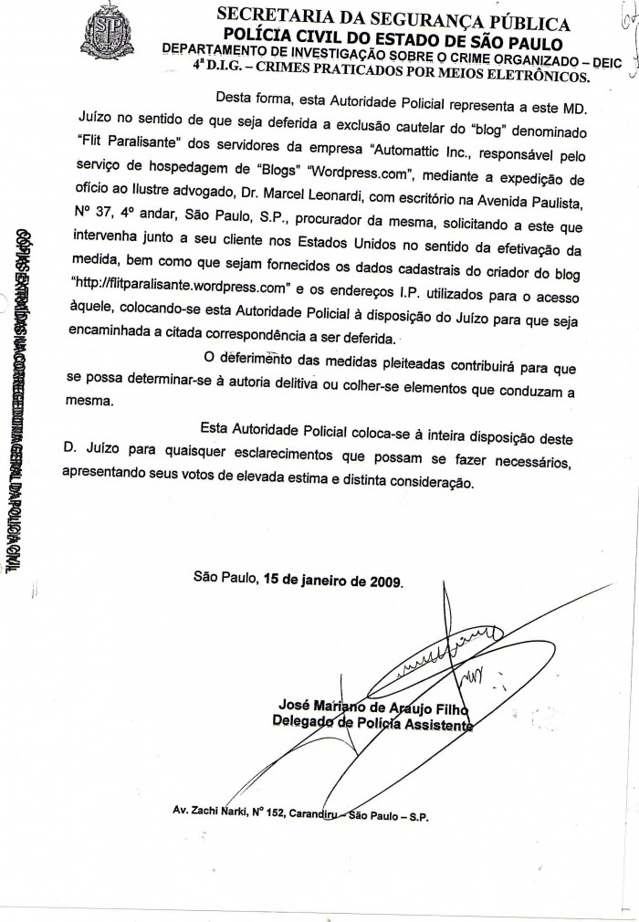 1. Lendo essa representação fica claro que não partiu das mãos de tal digna autoridade policial, mas sim de algum escritório de advocacia a mando de José Serra.
