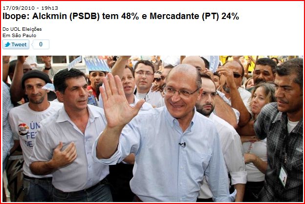 Com a saída de Quércia e apoio declarado a Aloysio, o candidato do PSDB chega ao segundo lugar, somando 25% das intenções de voto.