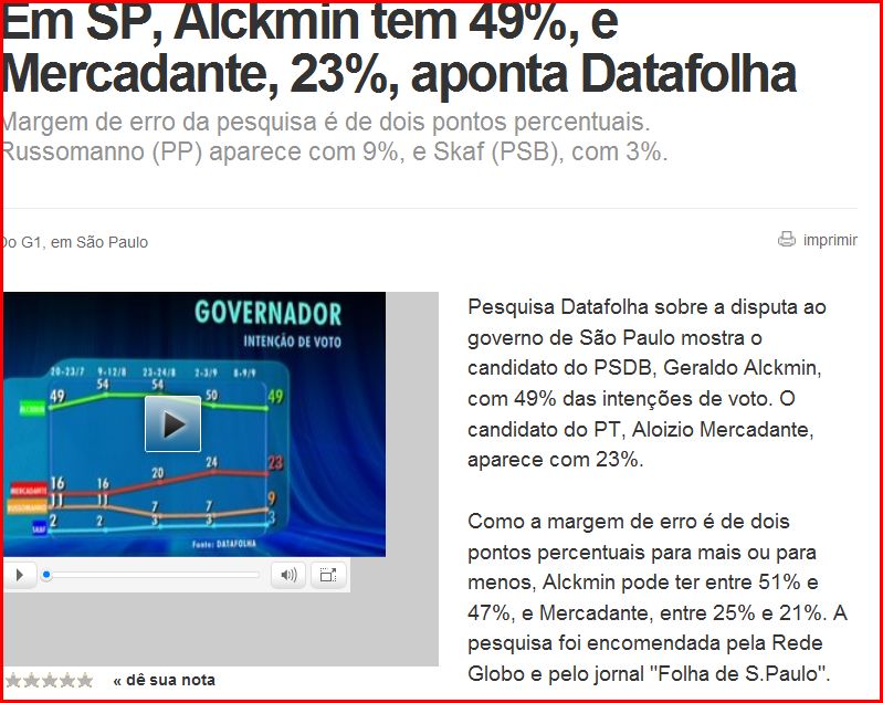 Ibope: Alckmin cai de 51% para 46%; Mercadante passa de 20% para 22% 19
