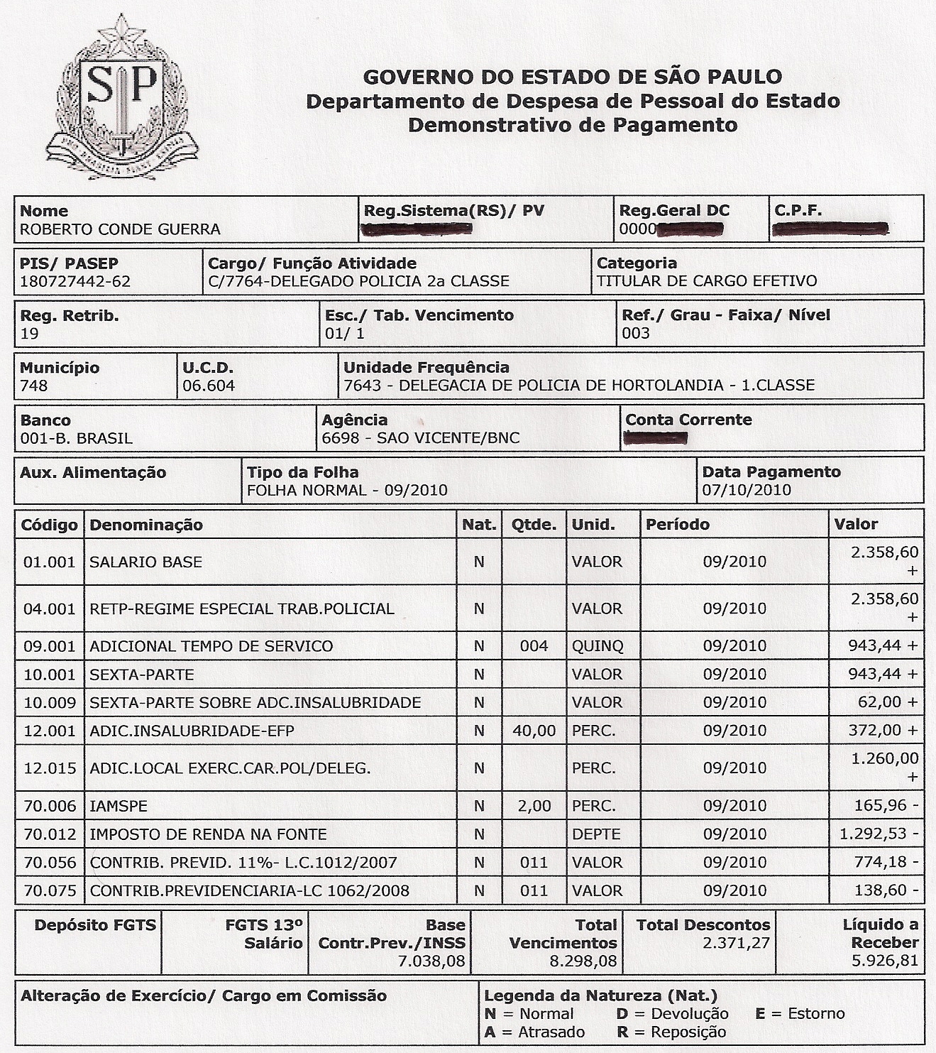 DELPOL-SP Hollerite de um procurador de justiça, comprovando ganhos mensais de 36.000,00 redondos 17