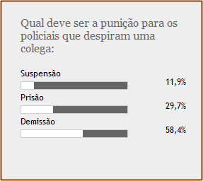 A partir de agora é possível antecipar que nunca mais a Corregedoria, ou a polícia como um todo, irá submeter alguém a tamanha humilhação. Se isso de fato acontecer, terá sido uma grande mudança. Nunca mais se verão cenas como a da escrivã sendo despida na marra por delegados prepotentes, em completa dessitonia com o que está prescrito no Artigo 249 do Código de Processo Penal. E, caso isso venha novamente a acontecer, os chefes dos tiranos não estarão tão à vontade para defender o mau comportamento.