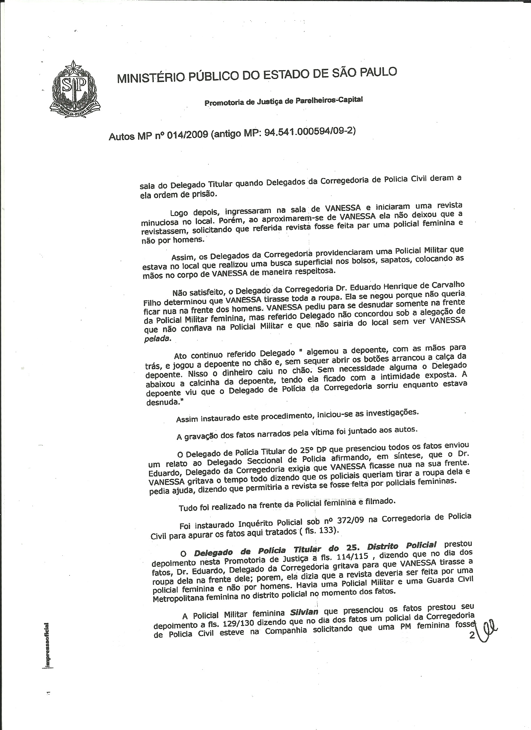 Até mesmo o representante do Ministério Público, o Promotor Público Everton Zanella, como que conivente com a barbárie, procurou justificar a atitude dos policiais, dizendo que “despir a Escrivã foi conseqüência do transcorrer da operação policial contra ela”