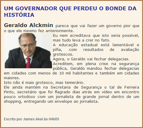 Alem da divulgação do encontro do Secretário de Segurança com o repórter de Folha de São Paulo que continua tendo essa enorme repercussão, que outros fatos você acha que foram importantes? – A tentativa desesperada do jornal em tentar explicar o inexplicável e a ânsia do Secretário de Segurança em derrubar delegados indóceis.