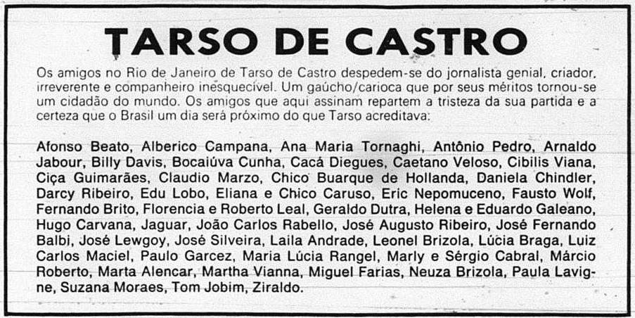 Vinte anos sem o polêmico Tarso de Castro: O ÚLTIMO HERÓI DO BRASIL 10