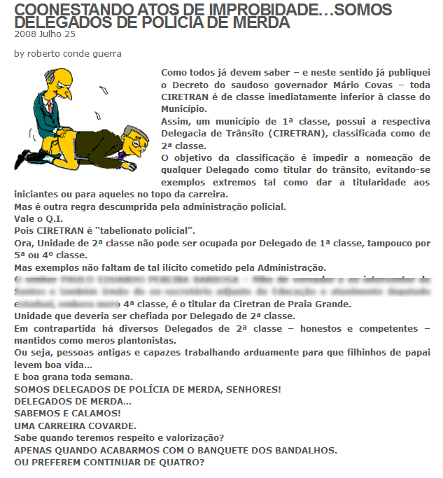 Observem nos documentos acima – INTERESSADO: A IDENTIFICAR; que foram instruídos com cópias impressas de postagens artificiosamente editadas com a supressão do nome do autor: ROBERTO CONDE GUERRA.