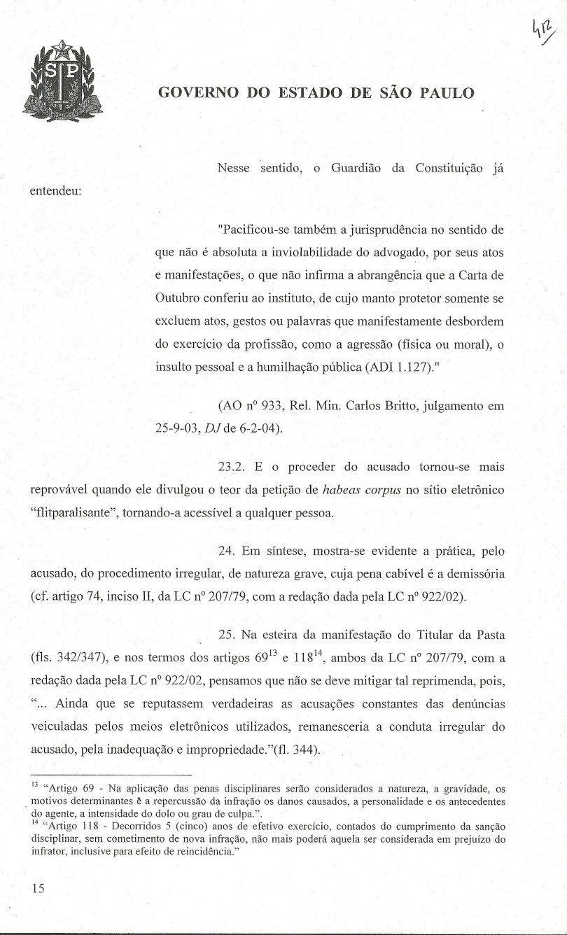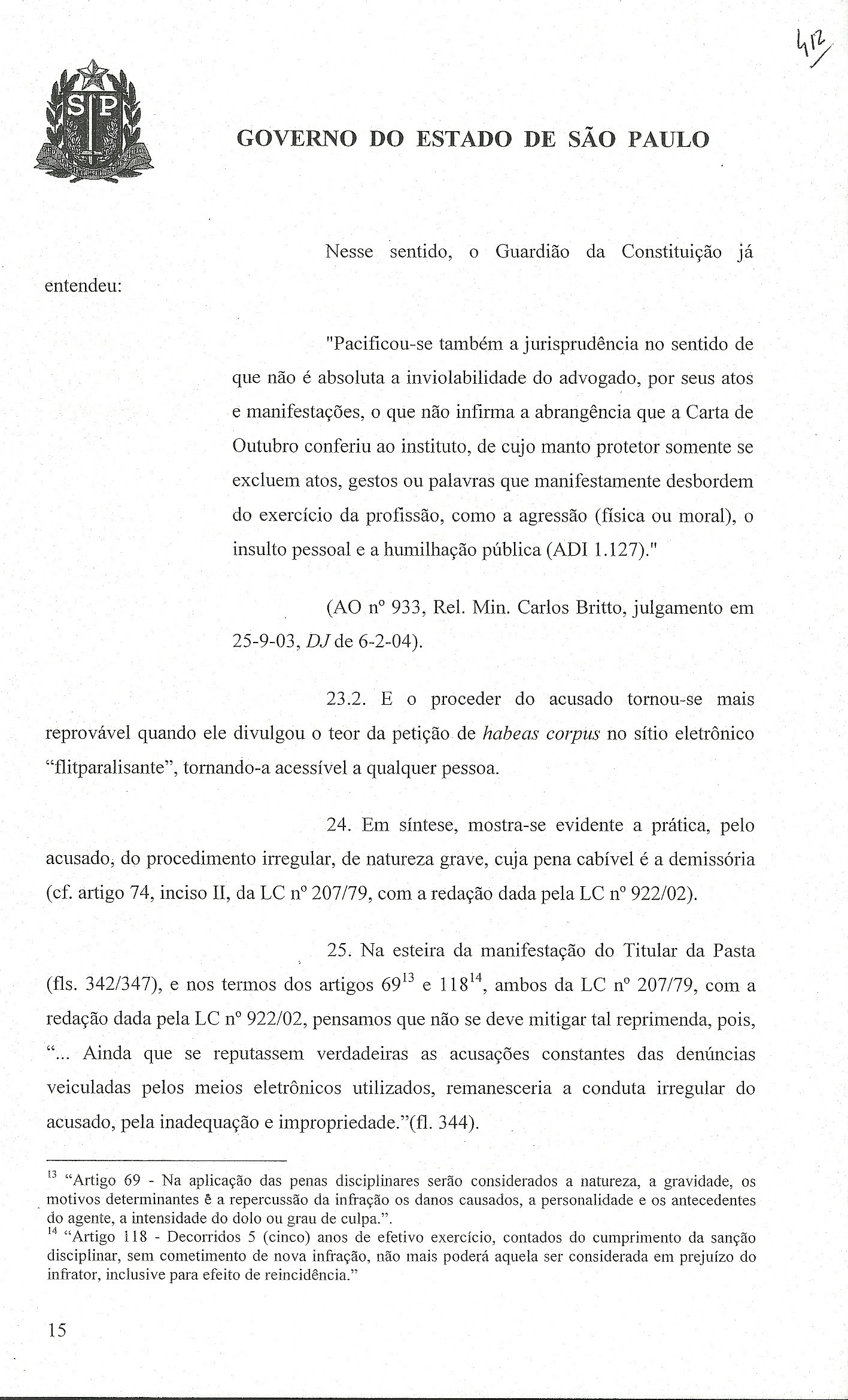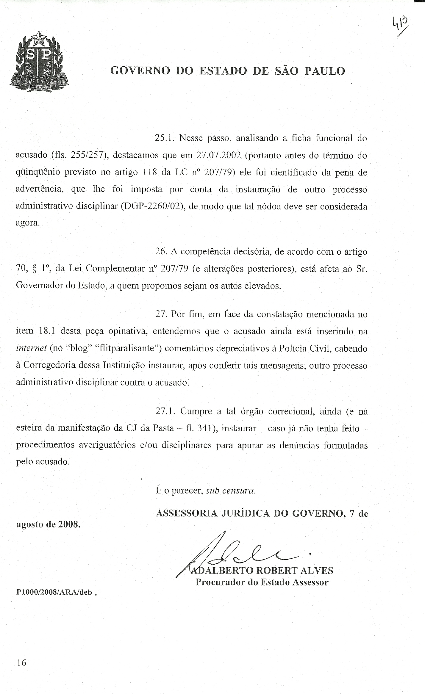 • e pelo fato de a Justiça paulista não ter punido os delegados que arrancaram a roupa da então escrivã que era suspeita de corrupção.