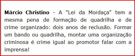 Finalizando, o que Vossa Excelência acha da “LEI DA MORDAÇA”?