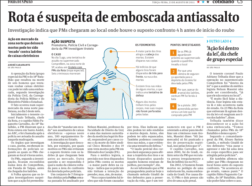 Conforme revelou a Folha ontem, a operação no mercado pode ter sido uma emboscada, segundo investigação da Polícia Civil, da Corregedoria da Polícia Militar e do Ministério Público Estadual.