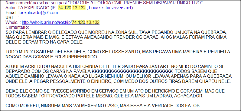 A Folha tentou contato com o delegado Eder Pereira da Silva, responsável pela investigação, mas não teve resposta. Na semana passada, a Secretaria da Segurança Pública informou que o caso estava sob investigação.