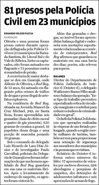 Durante a prisão, o filho de Batista chegou a dizer para os policiais que o prenderam que seu pai é o comandante-geral da PM.