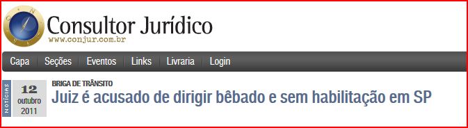 O juiz Francisco Orlando de Souza, de 57 anos, é acusado de dirigir sem habilitação e embriagado, pela Polícia Civil de São Paulo. Segundo o delegado Frederico Costa Miguel, o magistrado se envolveu numa briga de trânsito na Avenida Armando Italo Setti, em São Bernardo (SP), na frente do 1º Distrito Policial da cidade. Estava aos berros, esmurrando o vidro de um carro, de acordo com a polícia. Ele nega todas as acusações. As informações são da Folha de S. Paulo e do Estado de S. Paulo.