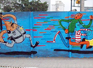 Uma reunião deve acontecer hoje para tentar resolver o impasse. Os artistas dizem que só aceitam preencher o muro com o mesmo trabalho.