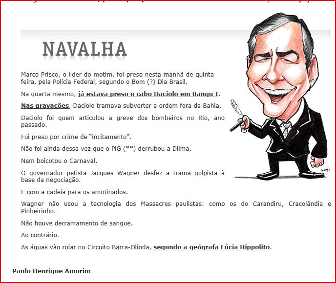 O secretário ressaltou que sempre esteve aberto para o diálogo, mas diante de uma greve não há o que negociar. “Independente do fato que tem clareza que a greve é vedada às corporações militares, há um valor muito maior que é o fato que é absolutamente inaceitável que uma corporação de bombeiros seja incitada a fazer greve. O que tá em jogo é a vida de pessoas”, disse. “A greve é covarde, inaceitável e leviana”, completou Simões, acrescentando que quem participar da greve pode sofrer punições. Ele afirmou que não descarta a hipótese de expulsar o cabo Daciolo da corporação. “Não quero antecipar nenhum procedimento, mas é uma possibilidade que se abra um processo administrativo para avaliar as condições dele permanecer na corporação, mas não quero antecipar”, disse. Segundo Simões, escutas autorizadas pela Justiça mostraram Daciolo conversando com outras pessoas sobre estratégias para deflagrar greves no estado do Rio de Janeiro. O cabo estava em Salvador, na Bahia, reunido com líderes do movimento grevista da Polícia Militar daquele estado. O governador Sérgio Cabral pediu ao governo da Bahia as cópias das gravações telefônicas, nas quais o cabo Daciolo planejava estratégias de deflagração de atos grevistas no Rio. As escutas foram exibidas no Jornal Nacional nesta quarta-feira.