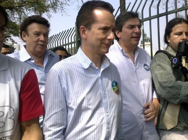 Apoio de pastores Além da segurança pública, o candidato comentou uma reportagem do jornal O Estado de S. Paulo que afirmou que a igreja evangélica Assembleia de Deus Ministério em Santo Amaro, na zona sul, estabeleceu metas de votos a serem atingidas por seus pastores para eleger Russomanno. “Eu fico muito feliz de ter todas as igrejas me apoiando, muito feliz”, limitou-se a dizer ele.