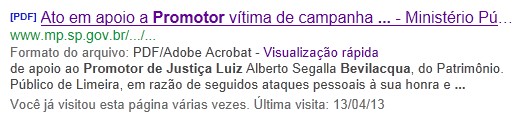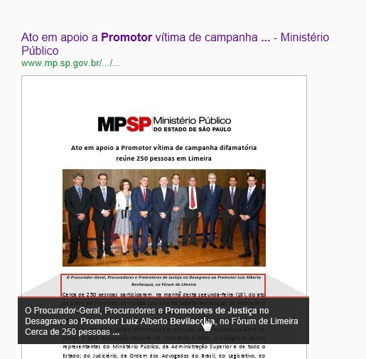 Ministério Público de São Paulo ruborizado com a negativa repercussão da perseguição endereçada ao advogado que faz críticas abertas a atuação de um Promotor de Justiça de Limeira retirou do site oficial – MANTIDO COM O NOSSO DINHEIRO – o conteúdo sobre o desagravo realizado naquela cidade de cunho eminentemente privado e corporativista 14