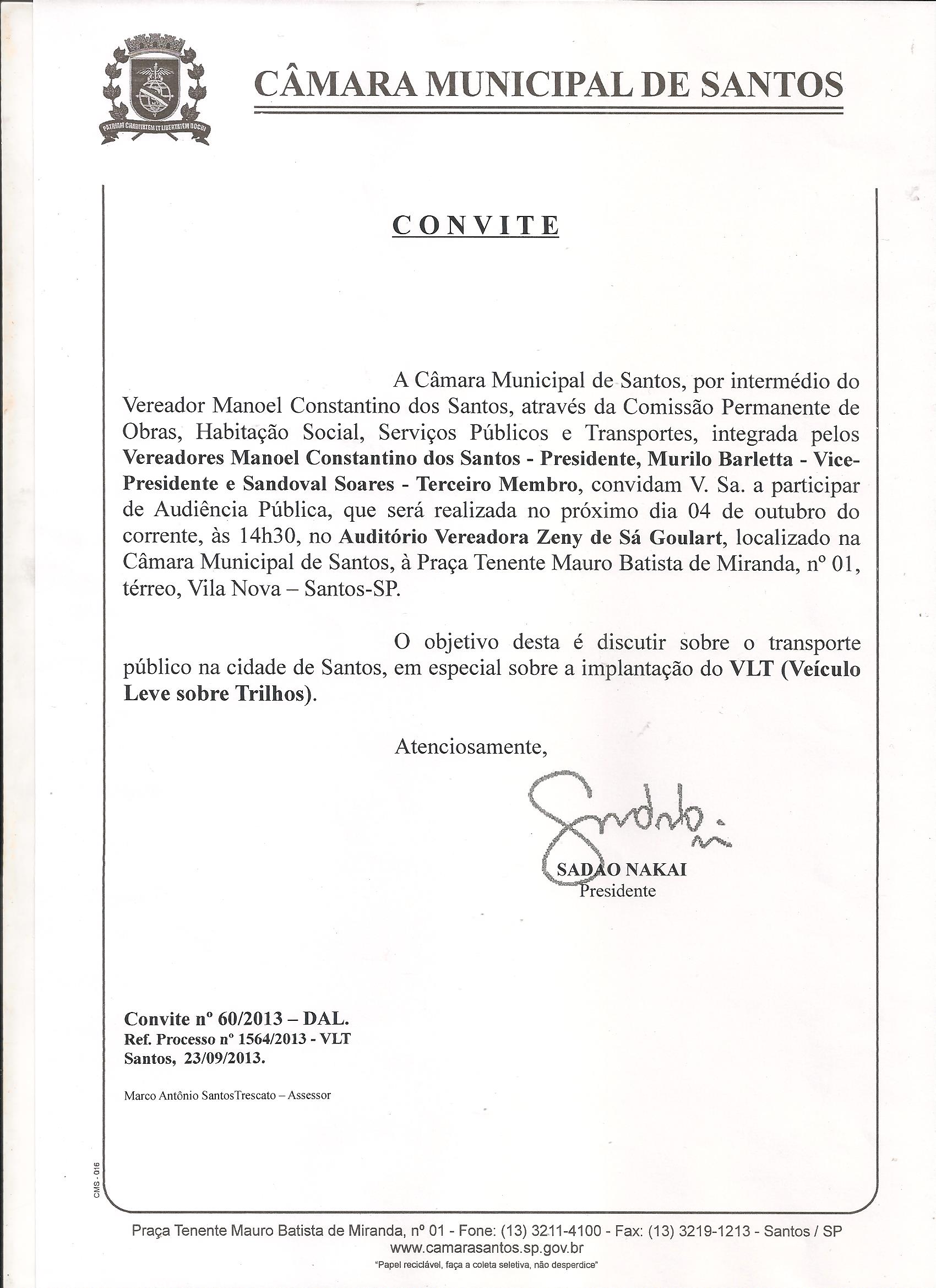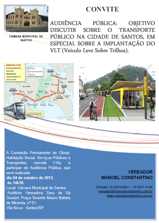 Dia 4 de outubro – Vereador Manoel Constantino convida cidadãos da Baixada Santista para Audiência Pública sobre o VLT ( Veículo Leve Sobre Trilhos ) 19