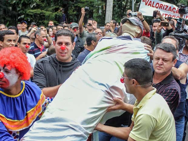 GENTE !, S.M.J., JÁ QUE APENAS CEM PARTICIPARAM DA MANIFESTAÇÃO, QUE TAL O NOSSO AMADO CHUCHU, CONCEDER-LHES R$ 100,00 DE AUMENTO PARA TODA A TROPA. PELO MENOS S.M.J., COMPRA-SE CEM COXINHAS DE R$ 1,00 E ME AJUDEM AÍ Ó !…