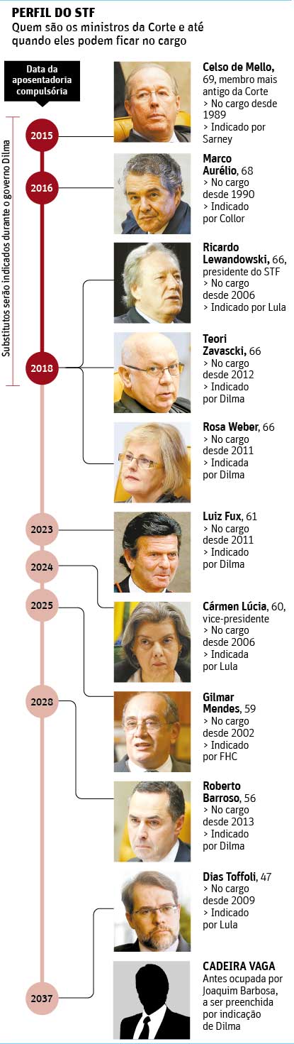 Se a emenda não fora aprovada, Dilma poderá nomear seis ministros do Supremo até 2018. Além da vaga do ex-ministro Joaquim Barbosa, que antecipou sua aposentadoria e deixou o tribunal em julho, vão se aposentar por idade nos próximos quatro anos os ministros Celso de Mello, Marco Aurélio Mello, Ricardo Lewandowski, Teori Zavascki e Rosa Weber.