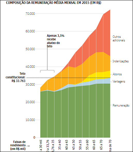 Segundo o artigo 37 da Constituição, nenhum servidor federal ou ocupante de cargo eletivo pode receber remuneração superior à dos ministros do Supremo Tribunal Federal (STF). Na redação atual do artigo, verbas indenizatórias não são contadas dentro deste limite.
