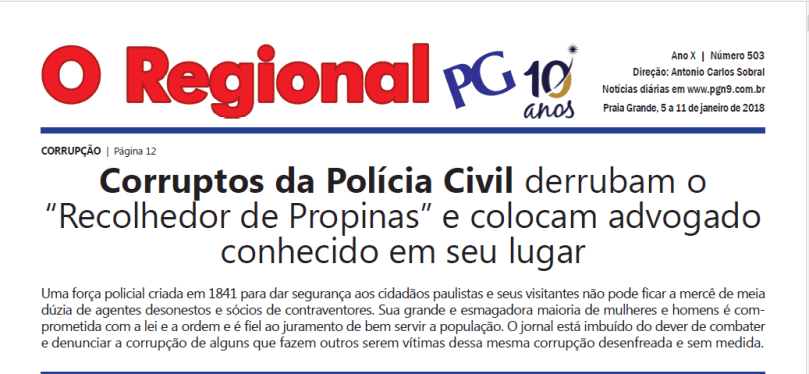 Infelizmente a matéria não dá nome aos bois, mas segundo informes obtidos pelo Flit a nova “cúpula da recolha” é composta por um escrivão, um investigador chefe de distrito, um perito criminal , um maquineiro que se diz assessor de um vereador de São Vicente e dois advogados .