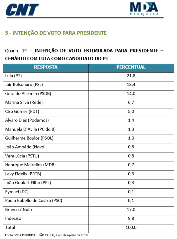 Acredito que Bolsonaro nem irá para o segundo turno, numa hipótes de Lula ter sua candidatura negada, pois seus eleitores jamis votarão no fascista e incompetente Bolsonaro. É possível que com isso a disputa em segundo turno será entre Alckimin e Ciro.