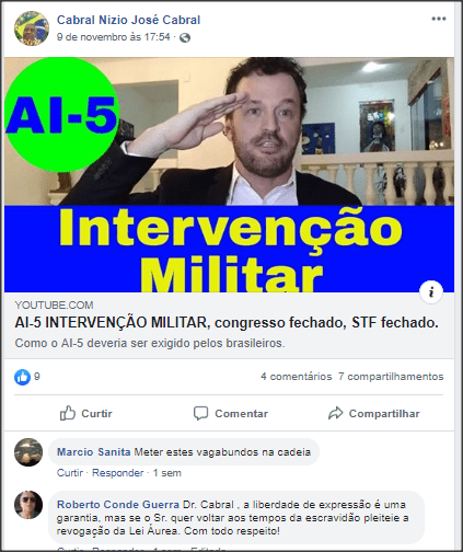 “Agora eu não entendi a relação que o Dr.Conde fez com negros pedindo a volta do AI-5 seria o mesmo que pedir a revogação da lei Áurea” …