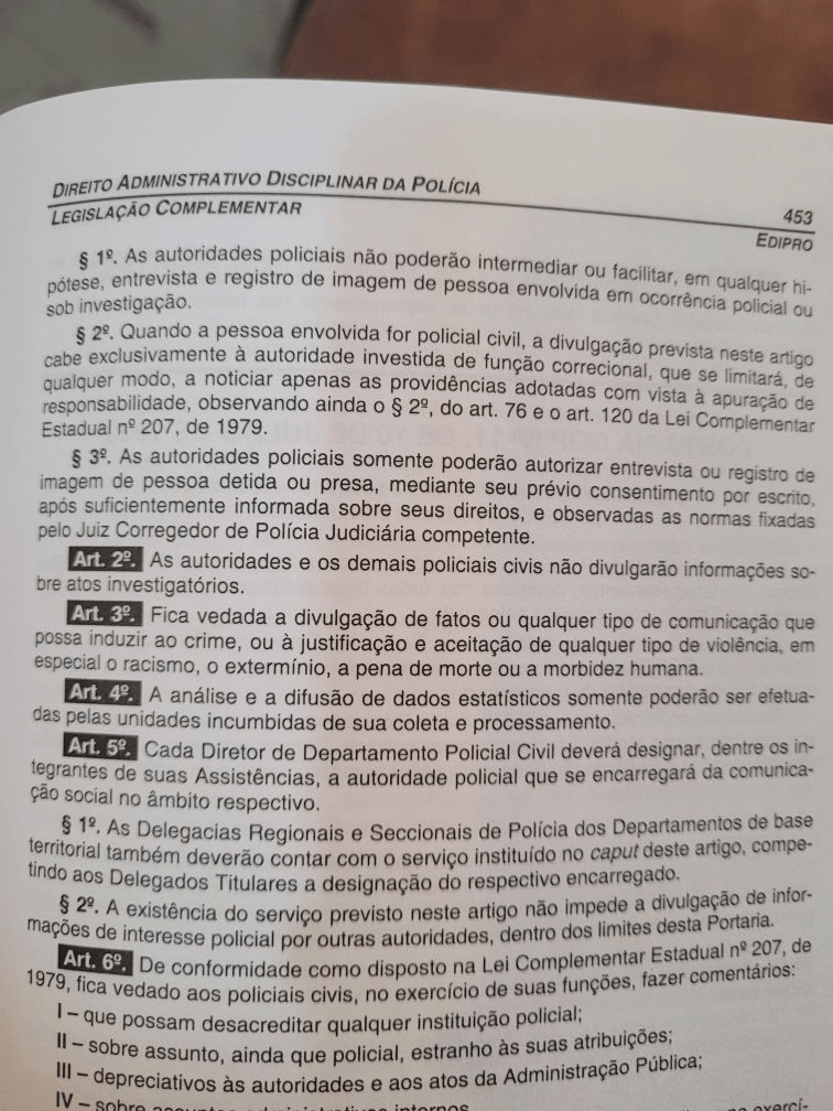 Fonte: Direito Administrativo Disciplinar da Polícia – Dr. Mario Leite de Barros Filho. Edipro – 2ª edição – 2007.