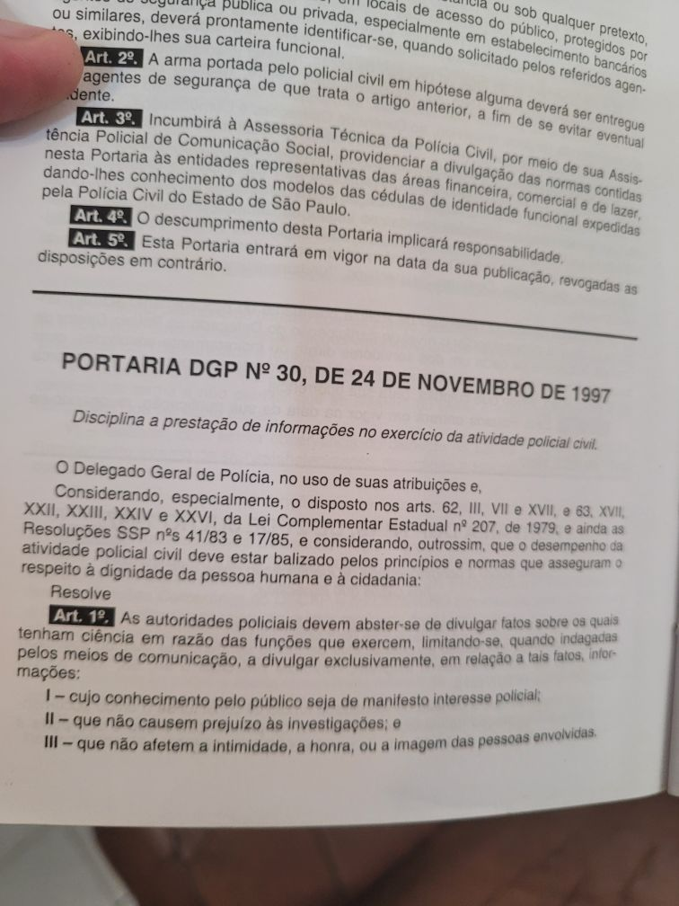 Portaria do então DGP – Dr. Luiz Paulo Braga Braun , segundo consta ainda em vigor complementada por normas posteriores ainda mais restritivas.