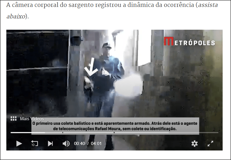 - A análise das imagens brutas, extraídas da bodycam com linha do tempo contínuo e sem artifícios gráficos, permite identificar que:Em certos quadros imediatamente anteriores ao confronto, há sim um ponto de brilho ou reflexo metálico na região do peito de Rafael Moura.