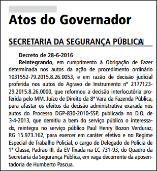 “A SSP informa que os três casos estão sendo investigados pelo DHPP através de inquérito policial. Em ocorrências nesta natureza, é praxe o acompanhamento das investigações pela Corregedoria da Policia Militar, com abertura de Inquérito Policial Militar quando necessário.